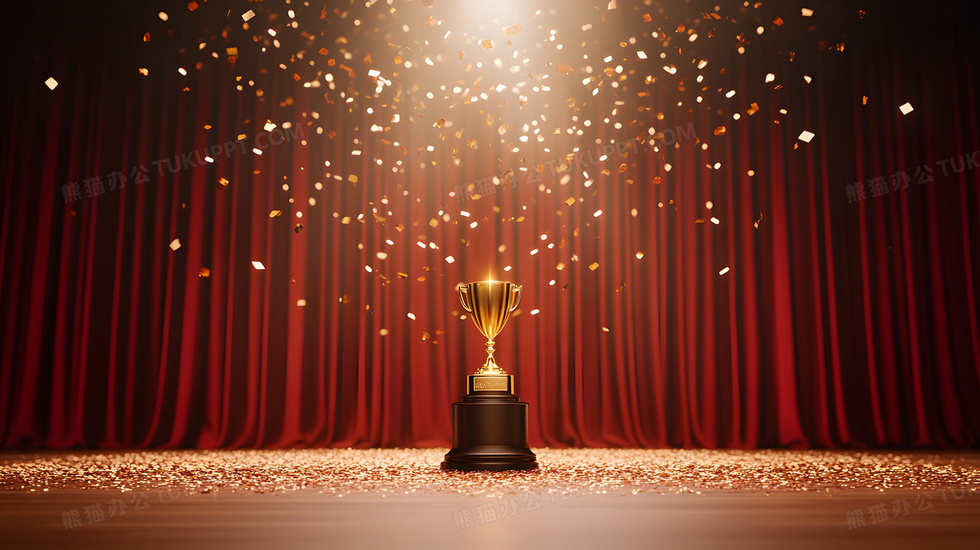 本作品内容为简约喜庆金色奖杯获奖荣誉舞台背景, 格式为 jpg, 大小2 MB, 图片尺寸为2912 x 1632, 作品中背景图片无需修改, 源文件无水印,可以直接使用, 欢迎使用熊猫办公。 如认为平台内容涉嫌侵权,可通过邮件:tousu@tukuppt.com提出书面通知,我们将及时处理。
