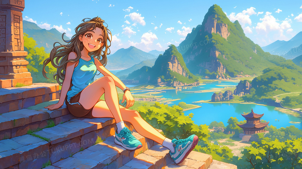本作品内容为青春少女登山运动插画, 格式为 jpg, 大小3 MB, 图片尺寸为2912 x 1632, 源文件无水印, 欢迎使用熊猫办公。 如认为平台内容涉嫌侵权,可通过邮件:tousu@tukuppt.com提出书面通知,我们将及时处理。