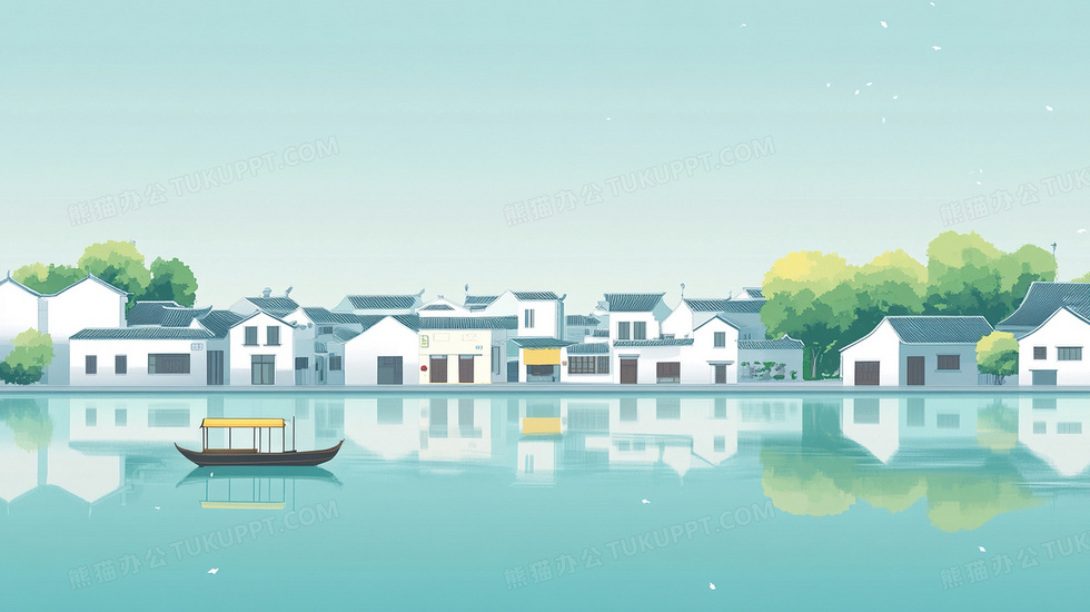 本作品内容为小船江南风景江南建筑江南水乡插画, 格式为 jpg, 大小2 MB, 图片尺寸为2912 x 1632, 源文件无水印, 欢迎使用熊猫办公。 如认为平台内容涉嫌侵权,可通过邮件:tousu@tukuppt.com提出书面通知,我们将及时处理。