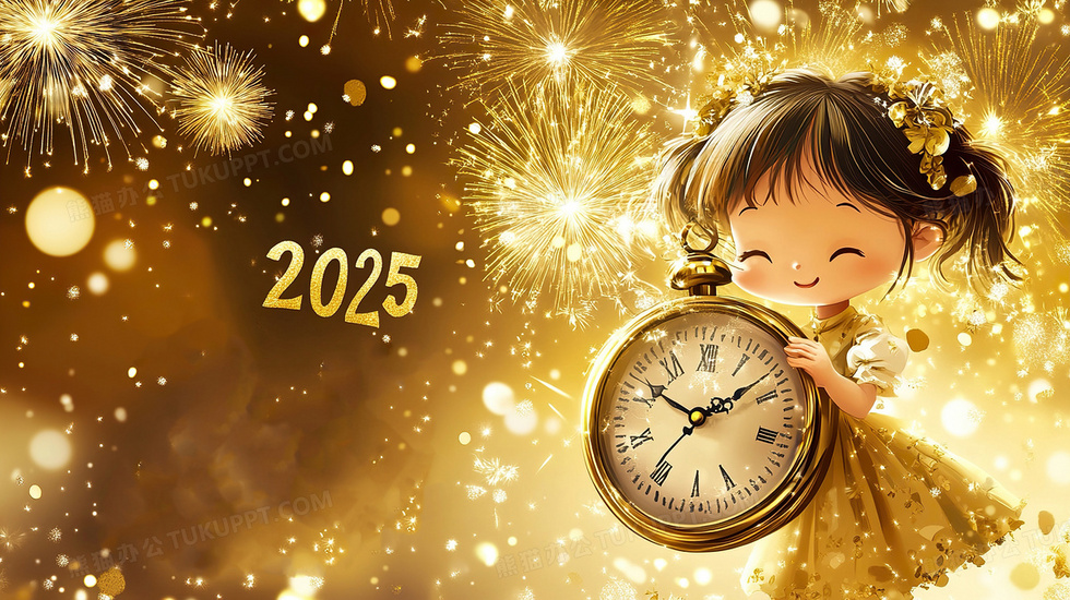 本作品内容为金色卡通风拿着始终倒计2025元旦插画, 格式为 jpg, 大小4 MB, 图片尺寸为2912 x 1632, 源文件无水印, 欢迎使用熊猫办公。 如认为平台内容涉嫌侵权,可通过邮件:tousu@tukuppt.com提出书面通知,我们将及时处理。