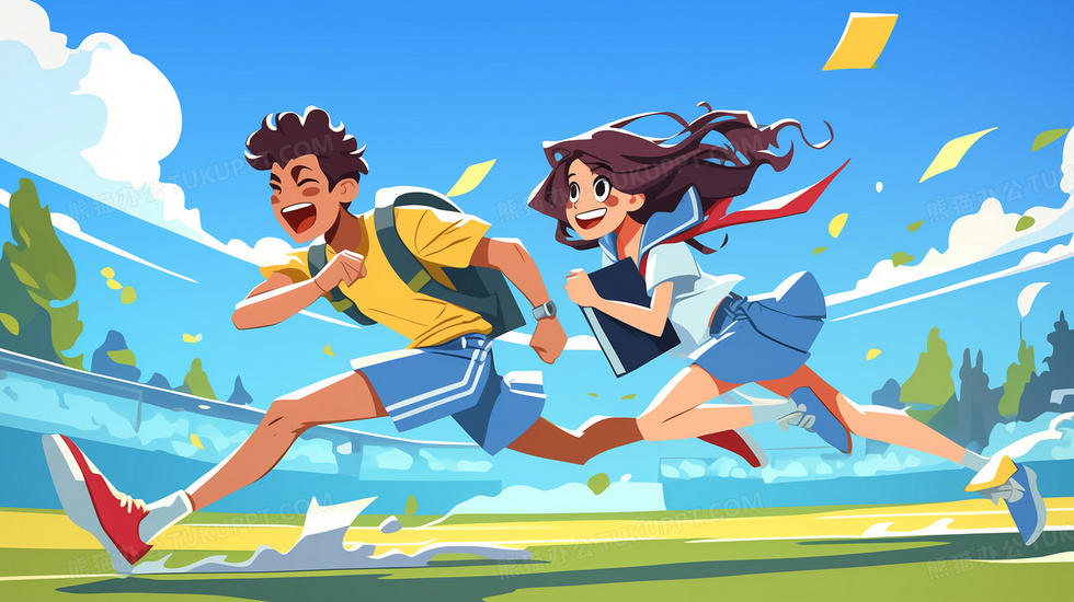 本作品内容为两名高中生抱着书本在海边奔跑插画, 格式为 jpg, 大小3 MB, 图片尺寸为2912 x 1632, 源文件无水印, 欢迎使用熊猫办公。 如认为平台内容涉嫌侵权,可通过邮件:tousu@tukuppt.com提出书面通知,我们将及时处理。
