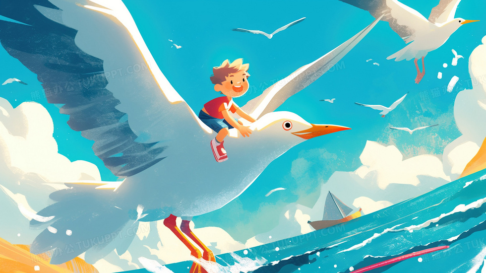 本作品内容为唯美蓝天白云海鸥大海帆船插画, 格式为 jpg, 大小3 MB, 图片尺寸为2912 x 1632, 源文件无水印, 欢迎使用熊猫办公。 如认为平台内容涉嫌侵权,可通过邮件:tousu@tukuppt.com提出书面通知,我们将及时处理。