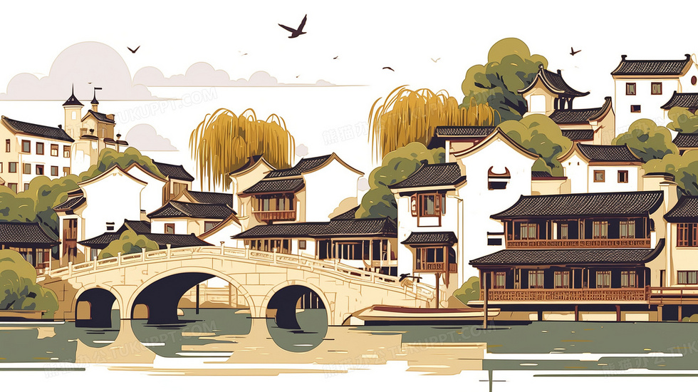 本作品内容为古韵幽静江南水乡古镇河流风光插画, 格式为 jpg, 大小3 MB, 图片尺寸为2912 x 1632, 源文件无水印, 欢迎使用熊猫办公。 如认为平台内容涉嫌侵权,可通过邮件:tousu@tukuppt.com提出书面通知,我们将及时处理。