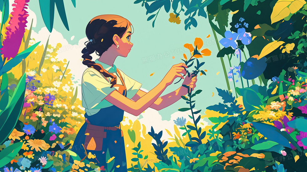 本作品内容为一个摘花的少女插画, 格式为 jpg, 大小4 MB, 图片尺寸为2912 x 1632, 源文件无水印, 欢迎使用熊猫办公。 如认为平台内容涉嫌侵权,可通过邮件:tousu@tukuppt.com提出书面通知,我们将及时处理。