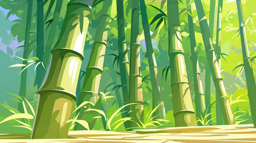 本作品内容为一片翠绿的竹林插画, 格式为 jpg, 大小3 MB, 图片尺寸为2912 x 1632, 源文件无水印, 欢迎使用熊猫办公。 如认为平台内容涉嫌侵权,可通过邮件:tousu@tukuppt.com提出书面通知,我们将及时处理。