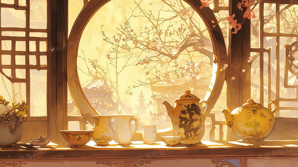 本作品内容为传统中式茶馆里的春茶插画, 格式为 jpg, 大小4 MB, 图片尺寸为2912 x 1632, 源文件无水印, 欢迎使用熊猫办公。 如认为平台内容涉嫌侵权,可通过邮件:tousu@tukuppt.com提出书面通知,我们将及时处理。