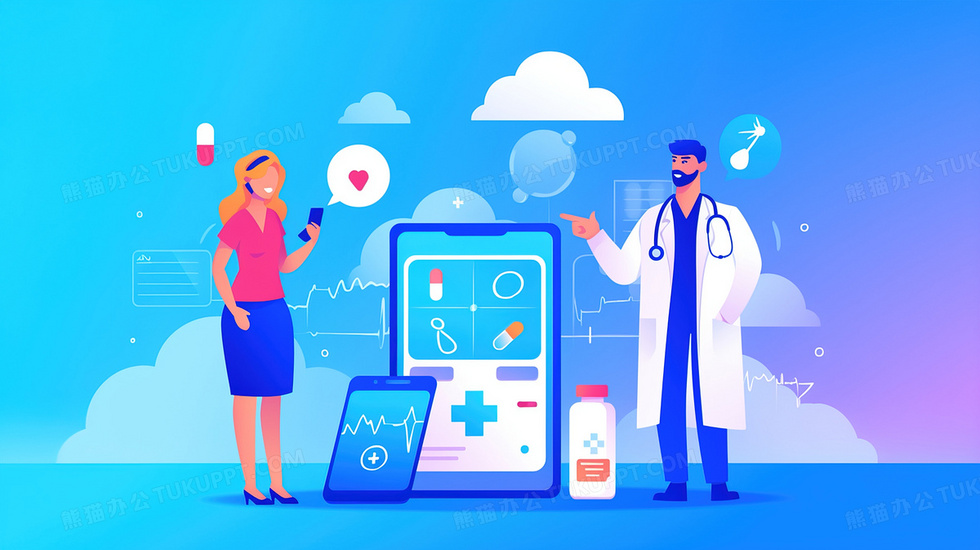 本作品内容为医疗APP线上会诊医生插画, 格式为 jpg, 大小2 MB, 图片尺寸为2912 x 1632, 源文件无水印, 欢迎使用熊猫办公。 如认为平台内容涉嫌侵权,可通过邮件:tousu@tukuppt.com提出书面通知,我们将及时处理。