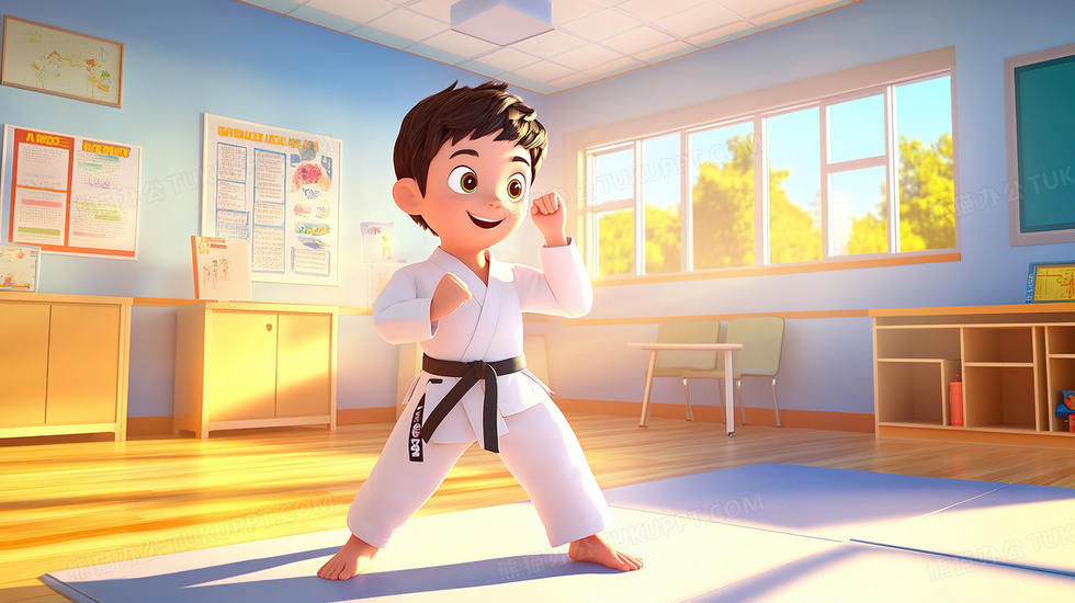 本作品内容为课外兴趣班体育类学习跆拳道的卡通男孩插画, 格式为 jpg, 大小3 MB, 图片尺寸为2912 x 1632, 源文件无水印, 欢迎使用熊猫办公。 如认为平台内容涉嫌侵权,可通过邮件:tousu@tukuppt.com提出书面通知,我们将及时处理。