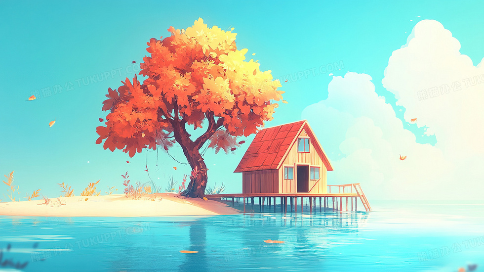 本作品内容为海岛木屋唯美壁纸风景插画, 格式为 jpg, 大小3 MB, 图片尺寸为2912 x 1632, 源文件无水印, 欢迎使用熊猫办公。 如认为平台内容涉嫌侵权,可通过邮件:tousu@tukuppt.com提出书面通知,我们将及时处理。