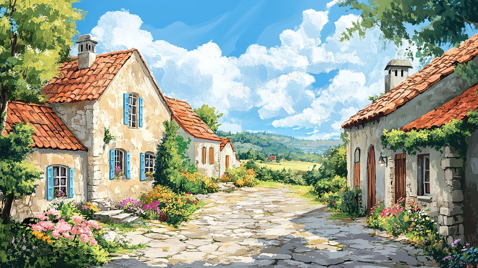本作品内容为欧式建筑的乡村插画, 格式为 jpg, 大小5 MB, 图片尺寸为2912 x 1632, 源文件无水印, 欢迎使用熊猫办公。 如认为平台内容涉嫌侵权,可通过邮件:tousu@tukuppt.com提出书面通知,我们将及时处理。