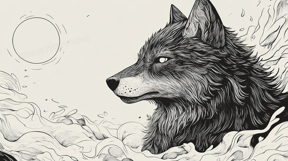 本作品内容为白描版画素描手绘狼插画, 格式为 jpg, 大小4 MB, 图片尺寸为2912 x 1632, 源文件无水印, 欢迎使用熊猫办公。 如认为平台内容涉嫌侵权,可通过邮件:tousu@tukuppt.com提出书面通知,我们将及时处理。