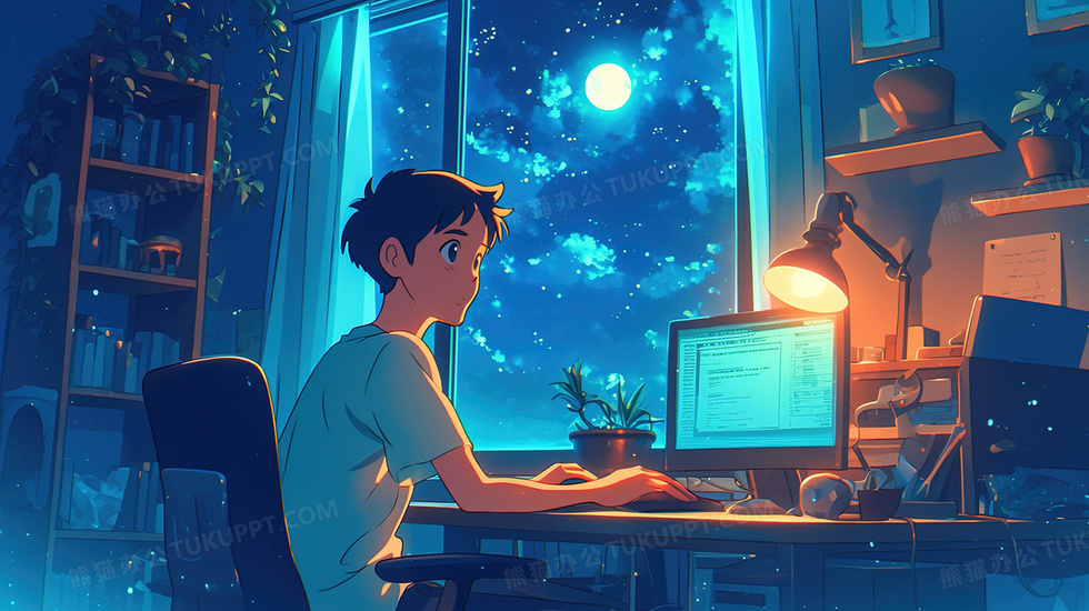 本作品内容为熬夜加班工作的打工人插画, 格式为 jpg, 大小3 MB, 图片尺寸为2912 x 1632, 源文件无水印, 欢迎使用熊猫办公。 如认为平台内容涉嫌侵权,可通过邮件:tousu@tukuppt.com提出书面通知,我们将及时处理。