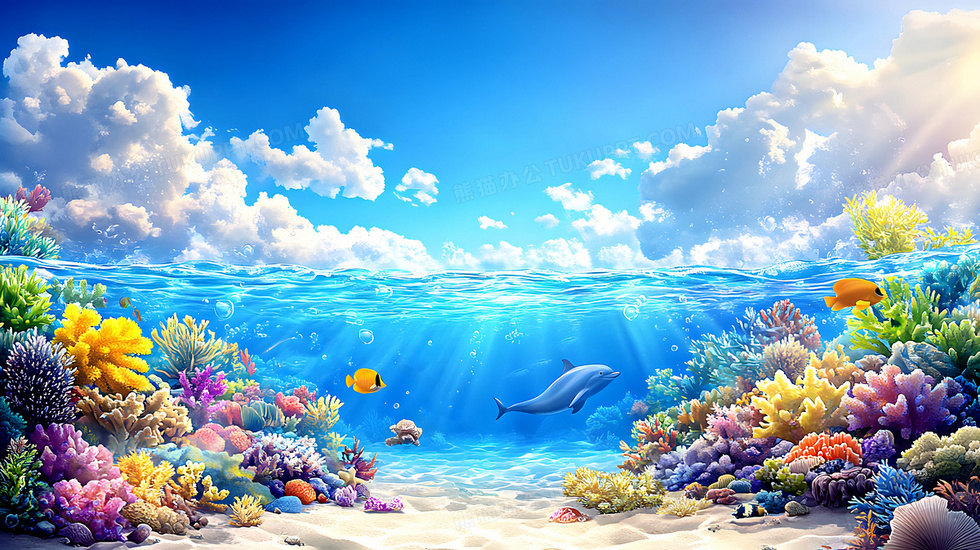 本作品内容为卡通海洋生物背景, 格式为 jpg, 大小4 MB, 图片尺寸为2912 x 1632, 作品中背景图片无需修改, 源文件无水印,可以直接使用, 欢迎使用熊猫办公。 如认为平台内容涉嫌侵权,可通过邮件:tousu@tukuppt.com提出书面通知,我们将及时处理。
