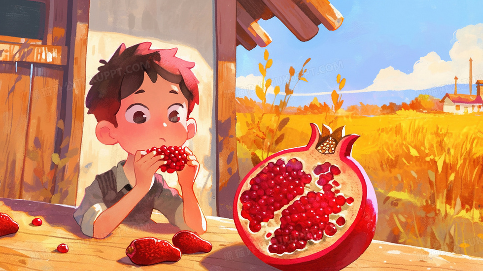 本作品内容为蓝天白云草地吃水果石榴卡通男孩插画, 格式为 jpg, 大小3 MB, 图片尺寸为2912 x 1632, 源文件无水印, 欢迎使用熊猫办公。 如认为平台内容涉嫌侵权,可通过邮件:tousu@tukuppt.com提出书面通知,我们将及时处理。