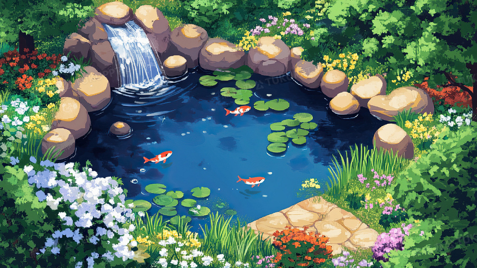 本作品内容为卡通风格池塘插画, 格式为 jpg, 大小5 MB, 图片尺寸为2912 x 1632, 源文件无水印, 欢迎使用熊猫办公。 如认为平台内容涉嫌侵权,可通过邮件:tousu@tukuppt.com提出书面通知,我们将及时处理。