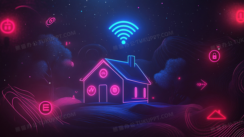 本作品内容为无线智能家居背景, 格式为 jpg, 大小3 MB, 图片尺寸为2912 x 1632, 作品中背景图片无需修改, 源文件无水印,可以直接使用, 欢迎使用熊猫办公。 如认为平台内容涉嫌侵权,可通过邮件:tousu@tukuppt.com提出书面通知,我们将及时处理。