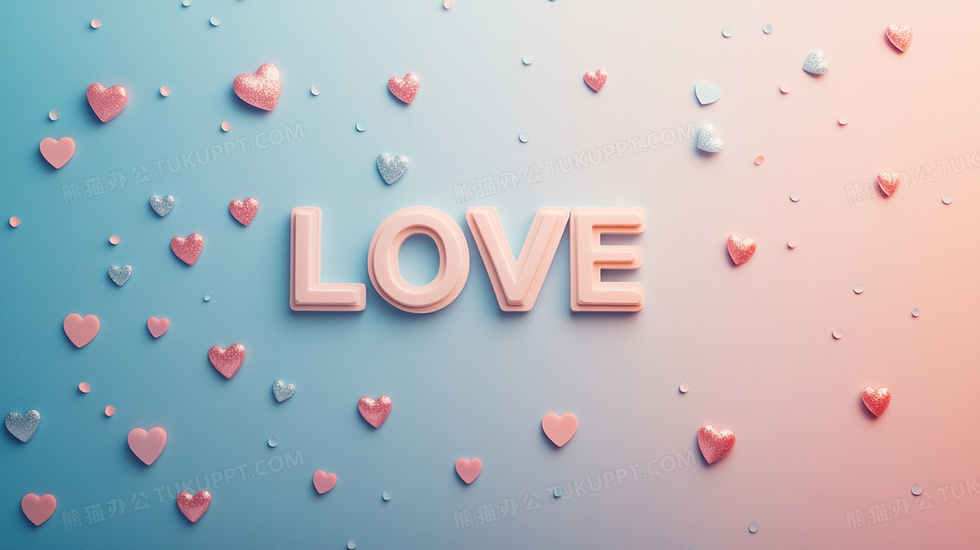 本作品内容为紫蓝简约风立体LOVE背景, 格式为 jpg, 大小3 MB, 图片尺寸为2912 x 1632, 作品中背景图片无需修改, 源文件无水印,可以直接使用, 欢迎使用熊猫办公。 如认为平台内容涉嫌侵权,可通过邮件:tousu@tukuppt.com提出书面通知,我们将及时处理。