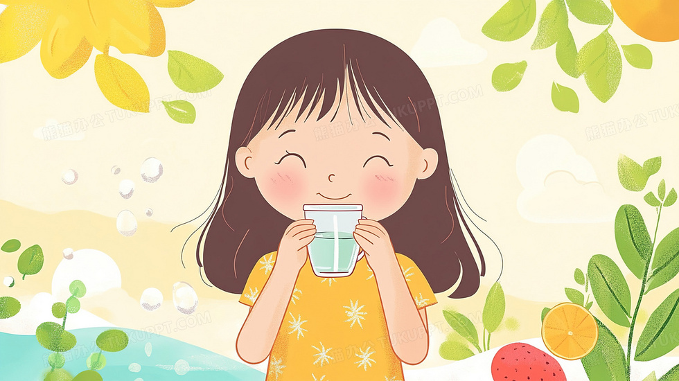 本作品内容为举着杯子喝水的可爱卡通女孩插画, 格式为 jpg, 大小3 MB, 图片尺寸为2912 x 1632, 源文件无水印, 欢迎使用熊猫办公。 如认为平台内容涉嫌侵权,可通过邮件:tousu@tukuppt.com提出书面通知,我们将及时处理。