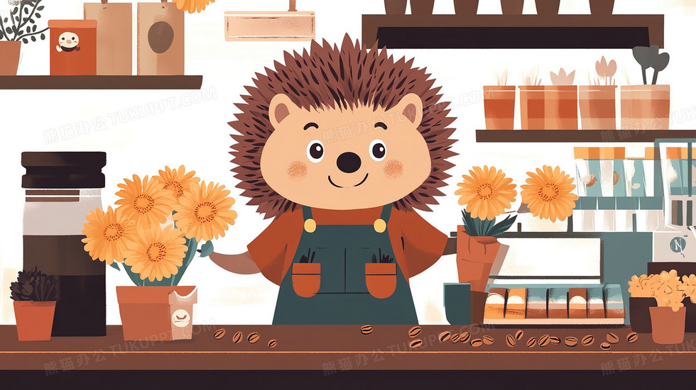 本作品内容为插画风格的刺猬咖啡师, 格式为 jpg, 大小2 MB, 图片尺寸为2912 x 1632, 源文件无水印, 欢迎使用熊猫办公。 如认为平台内容涉嫌侵权,可通过邮件:tousu@tukuppt.com提出书面通知,我们将及时处理。
