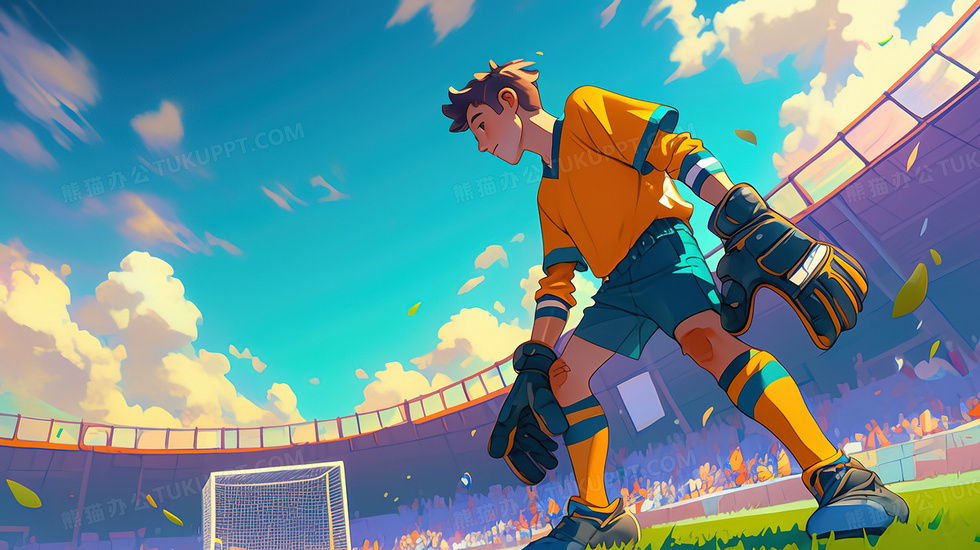 本作品内容为足球守门员卡通插画, 格式为 jpg, 大小3 MB, 图片尺寸为2912 x 1632, 源文件无水印, 欢迎使用熊猫办公。 如认为平台内容涉嫌侵权,可通过邮件:tousu@tukuppt.com提出书面通知,我们将及时处理。