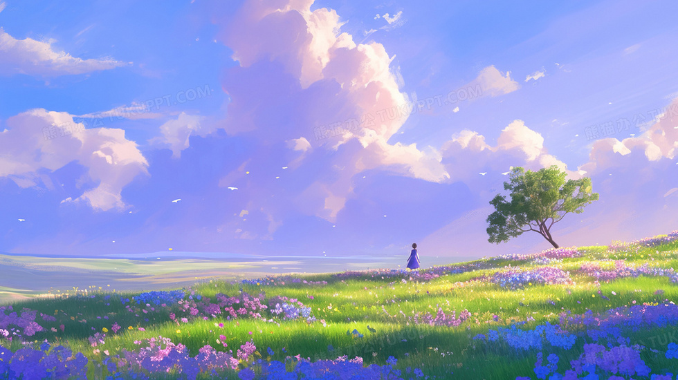 本作品内容为草地卡通人物看天空云层风景插画, 格式为 jpg, 大小3 MB, 图片尺寸为2912 x 1632, 源文件无水印, 欢迎使用熊猫办公。 如认为平台内容涉嫌侵权,可通过邮件:tousu@tukuppt.com提出书面通知,我们将及时处理。