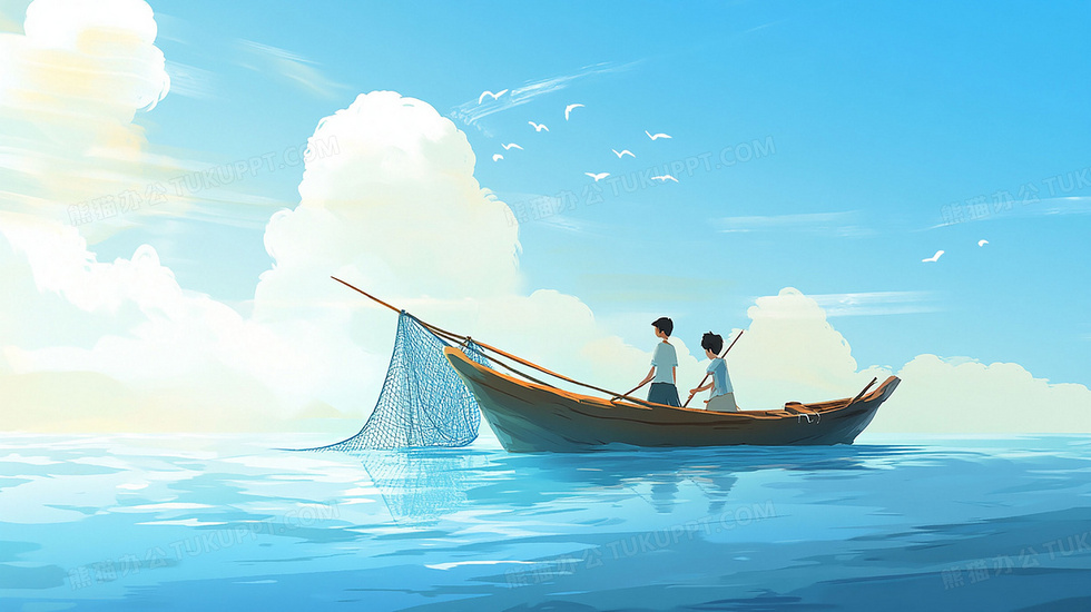 本作品内容为卡通渔民撒网捕鱼背景, 格式为 jpg, 大小1 MB, 图片尺寸为2912 x 1632, 作品中背景图片无需修改, 源文件无水印,可以直接使用, 欢迎使用熊猫办公。 如认为平台内容涉嫌侵权,可通过邮件:tousu@tukuppt.com提出书面通知,我们将及时处理。