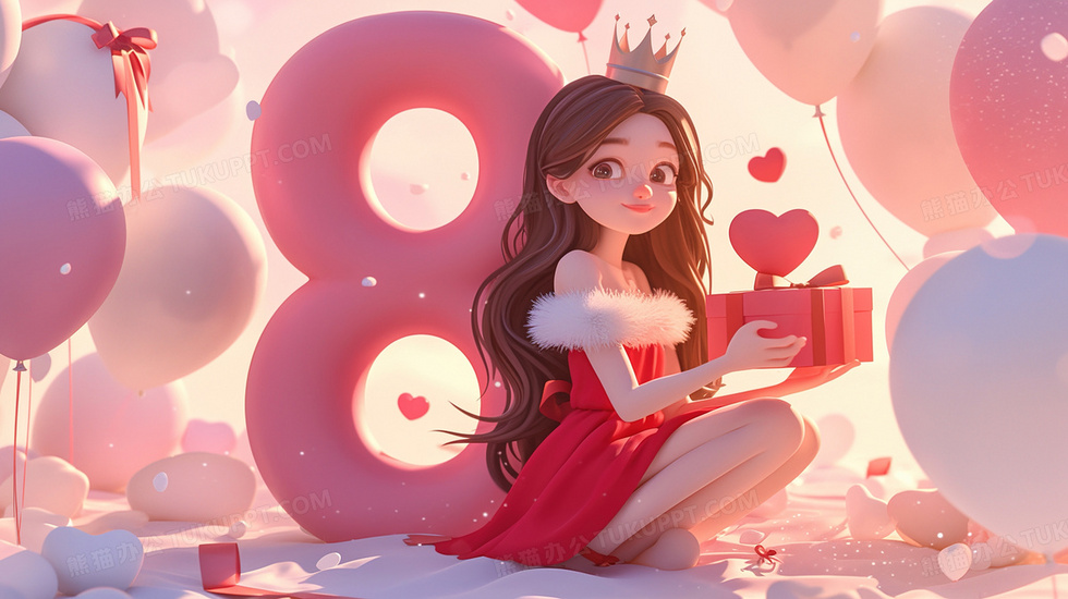 本作品内容为红色立体8艺术字与头戴皇冠女孩爱心插画, 格式为 jpg, 大小2 MB, 图片尺寸为2912 x 1632, 源文件无水印, 欢迎使用熊猫办公。 如认为平台内容涉嫌侵权,可通过邮件:tousu@tukuppt.com提出书面通知,我们将及时处理。