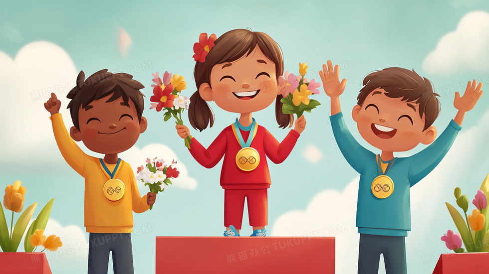 本作品内容为带着奖牌领奖的小学生插画, 格式为 jpg, 大小5 MB, 图片尺寸为2912 x 1632, 源文件无水印, 欢迎使用熊猫办公。 如认为平台内容涉嫌侵权,可通过邮件:tousu@tukuppt.com提出书面通知,我们将及时处理。