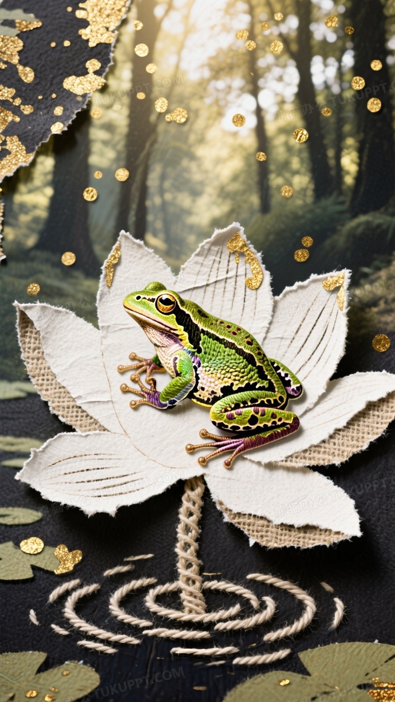 本作品内容为肌理拼贴艺术风格撕纸纹理青蛙栖息在拓印荷花上, 格式为 jpg, 大小1 MB, 图片尺寸为936 x 1664, 源文件无水印, 欢迎使用熊猫办公。 如认为平台内容涉嫌侵权,可通过邮件:tousu@tukuppt.com提出书面通知,我们将及时处理。