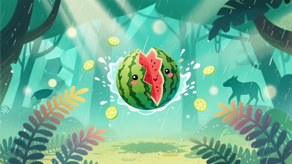 本作品内容为西瓜雨林奇幻插画弥散光斑模拟林间丁达尔效应, 格式为 jpg, 大小1 MB, 图片尺寸为1664 x 936, 源文件无水印, 欢迎使用熊猫办公。 如认为平台内容涉嫌侵权,可通过邮件:tousu@tukuppt.com提出书面通知,我们将及时处理。