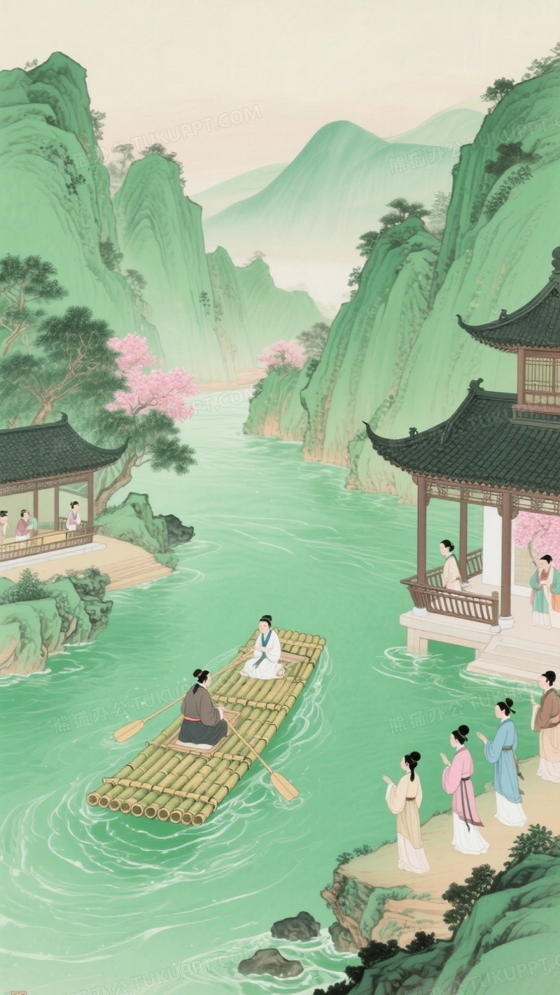 本作品内容为中国风漂流插画竹筏在碧绿的山间溪流中漂流, 格式为 jpg, 大小1 MB, 图片尺寸为936 x 1664, 源文件无水印, 欢迎使用熊猫办公。 如认为平台内容涉嫌侵权,可通过邮件:tousu@tukuppt.com提出书面通知,我们将及时处理。