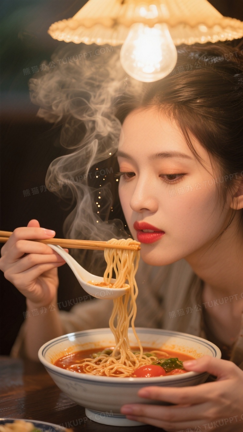 本作品内容为吃面条最美的女子她的指尖轻抚瓷碗边缘, 格式为 jpg, 大小1 MB, 图片尺寸为936 x 1664, 源文件无水印, 欢迎使用熊猫办公。 如认为平台内容涉嫌侵权,可通过邮件:tousu@tukuppt.com提出书面通知,我们将及时处理。
