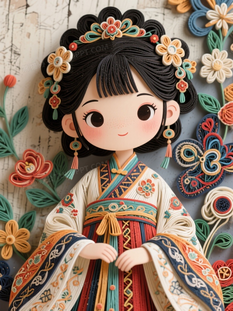本作品内容为衍纸艺术一个穿着汉服的女孩的卡通插画, 格式为 jpg, 大小1 MB, 图片尺寸为1104 x 1472, 源文件无水印, 欢迎使用熊猫办公。 如认为平台内容涉嫌侵权,可通过邮件:tousu@tukuppt.com提出书面通知,我们将及时处理。