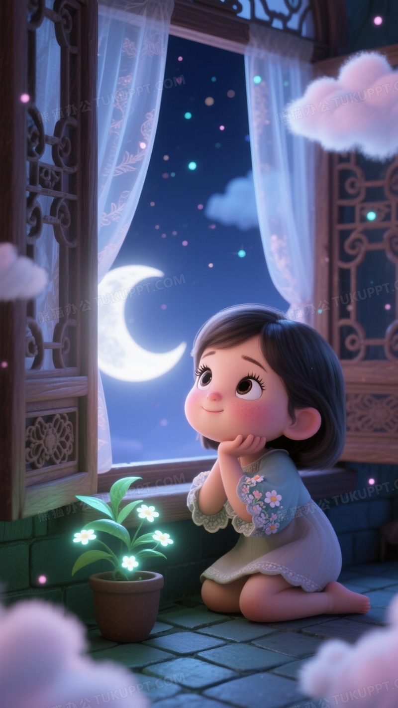 本作品内容为五岁Q版3D动画小女孩托腮跪坐在雕花木窗边, 格式为 jpg, 大小1 MB, 图片尺寸为936 x 1664, 源文件无水印, 欢迎使用熊猫办公。 如认为平台内容涉嫌侵权,可通过邮件:tousu@tukuppt.com提出书面通知,我们将及时处理。