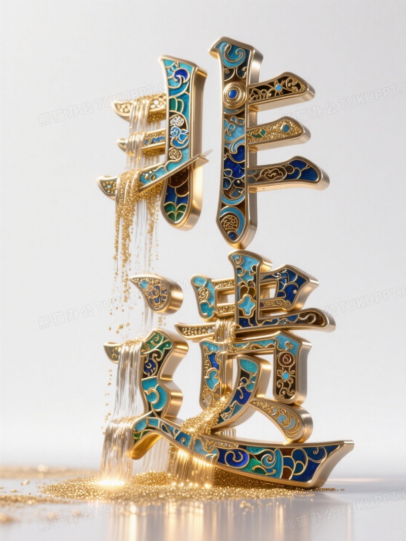 本作品内容为珐琅工艺文字非遗字由各种精密金属材质组成, 格式为 jpg, 大小1 MB, 图片尺寸为1104 x 1472, 源文件无水印, 欢迎使用熊猫办公。 如认为平台内容涉嫌侵权,可通过邮件:tousu@tukuppt.com提出书面通知,我们将及时处理。
