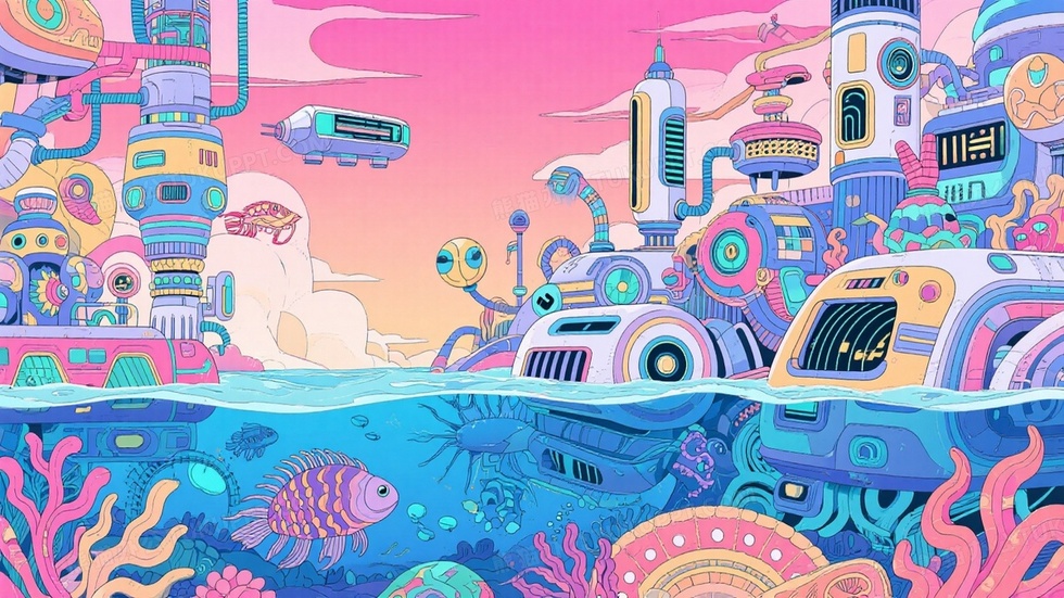本作品内容为未来机器与海洋共存画面包含丰富元素如各种奇异机器, 格式为 jpg, 大小1 MB, 图片尺寸为1664 x 936, 源文件无水印, 欢迎使用熊猫办公。 如认为平台内容涉嫌侵权,可通过邮件:tousu@tukuppt.com提出书面通知,我们将及时处理。