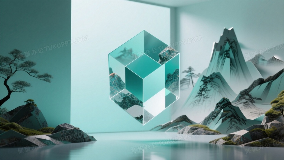 首页 > 插画 > 科技艺术 > 其他 > 立体主义重构山水几何色块切割青绿渐变