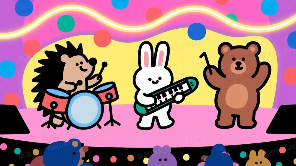 本作品内容为扁平化矢量设计动物幼儿园举办才艺表演, 格式为 jpg, 大小1 MB, 图片尺寸为1664 x 936, 源文件无水印, 欢迎使用熊猫办公。 如认为平台内容涉嫌侵权,可通过邮件:tousu@tukuppt.com提出书面通知,我们将及时处理。