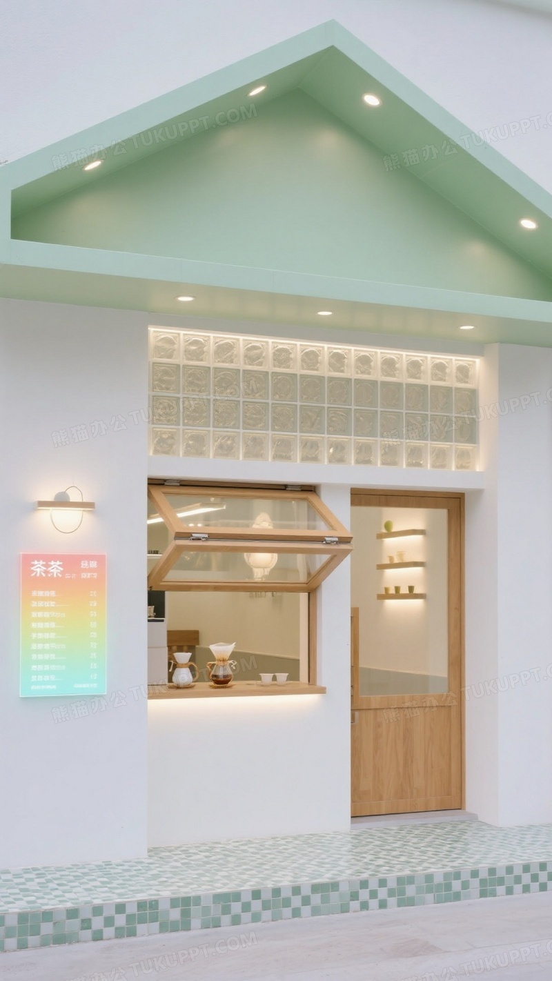 本作品内容为白色极简茶饮店门头浅绿色几何造型雨棚, 格式为 jpg, 大小1 MB, 图片尺寸为936 x 1664, 源文件无水印, 欢迎使用熊猫办公。 如认为平台内容涉嫌侵权,可通过邮件:tousu@tukuppt.com提出书面通知,我们将及时处理。