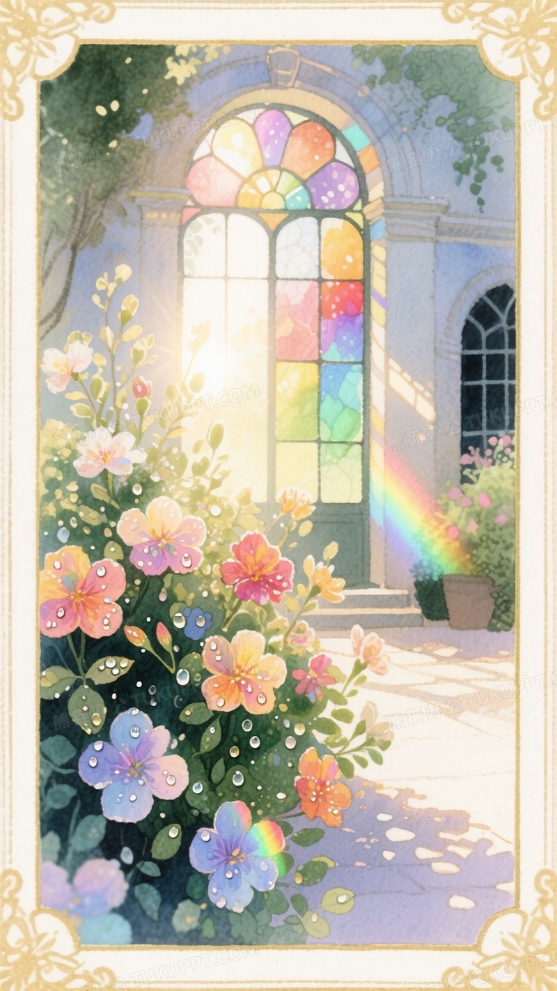 本作品内容为清新风格插画阳光透过彩色玻璃洒在复古庭院的花丛中, 格式为 jpg, 大小1 MB, 图片尺寸为936 x 1664, 源文件无水印, 欢迎使用熊猫办公。 如认为平台内容涉嫌侵权,可通过邮件:tousu@tukuppt.com提出书面通知,我们将及时处理。