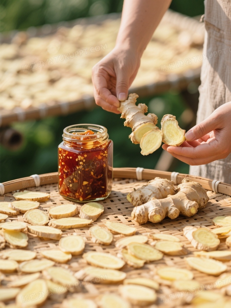 本作品内容为晒伏姜储暖意将生姜切片晾晒, 格式为 jpg, 大小1 MB, 图片尺寸为1104 x 1472, 源文件无水印, 欢迎使用熊猫办公。 如认为平台内容涉嫌侵权,可通过邮件:tousu@tukuppt.com提出书面通知,我们将及时处理。
