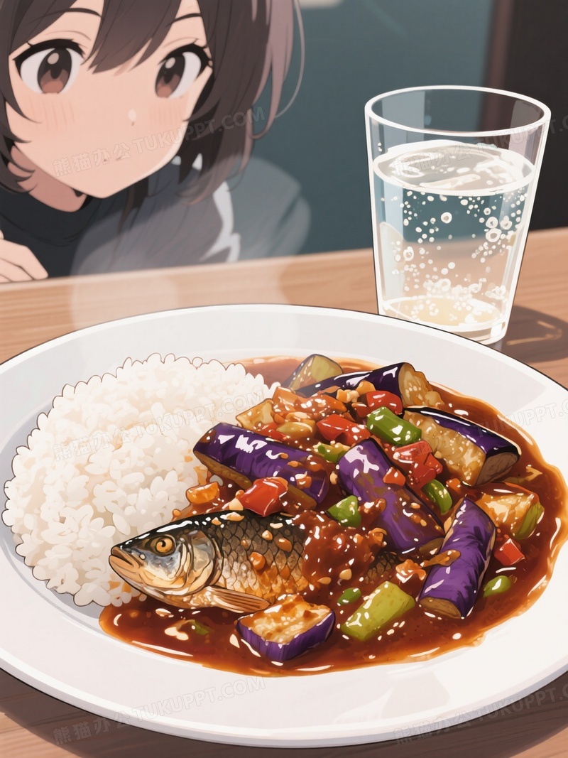 本作品内容为动漫插画一盘鱼香茄子盖浇饭, 格式为 jpg, 大小1 MB, 图片尺寸为1104 x 1472, 源文件无水印, 欢迎使用熊猫办公。 如认为平台内容涉嫌侵权,可通过邮件:tousu@tukuppt.com提出书面通知,我们将及时处理。