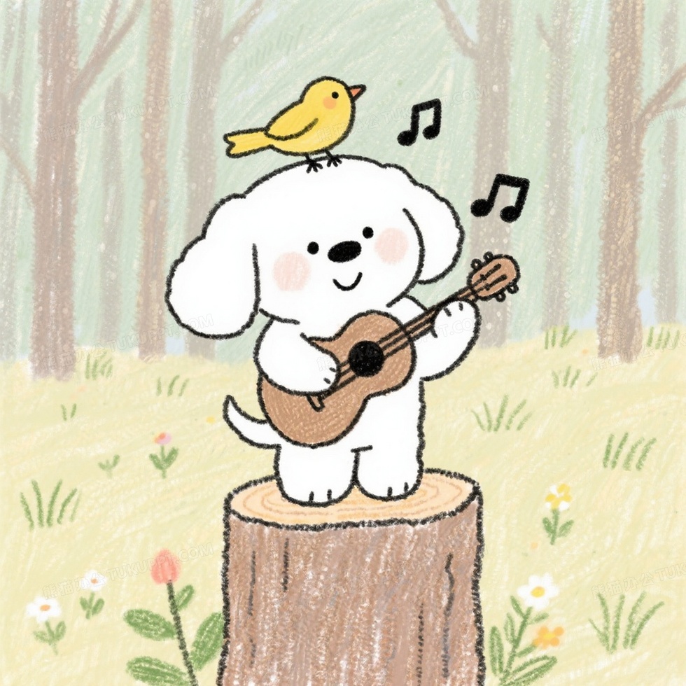 本作品内容为蜡笔风手绘插画超可爱的小狗弹吉他, 格式为 jpg, 大小1 MB, 图片尺寸为1328 x 1328, 源文件无水印, 欢迎使用熊猫办公。 如认为平台内容涉嫌侵权,可通过邮件:tousu@tukuppt.com提出书面通知,我们将及时处理。