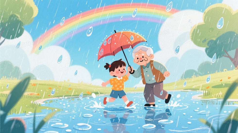 本作品内容为好看的公益卡通插画小朋友为老人撑伞走过积水路面, 格式为 jpg, 大小1 MB, 图片尺寸为1664 x 936, 源文件无水印, 欢迎使用熊猫办公。 如认为平台内容涉嫌侵权,可通过邮件:tousu@tukuppt.com提出书面通知,我们将及时处理。