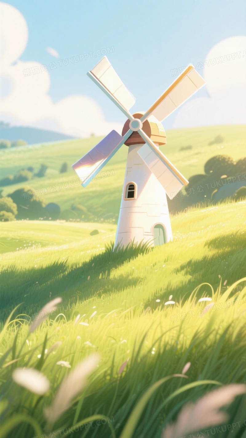 本作品内容为精美的卡通插画草原上风车叶片泛着光泽, 格式为 jpg, 大小1 MB, 图片尺寸为936 x 1664, 源文件无水印, 欢迎使用熊猫办公。 如认为平台内容涉嫌侵权,可通过邮件:tousu@tukuppt.com提出书面通知,我们将及时处理。