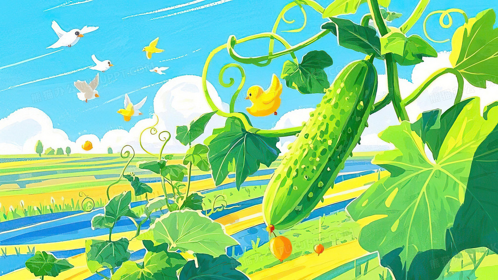 本作品内容为黄瓜蔬菜健康食物插画, 格式为 jpg, 大小5 MB, 图片尺寸为3072 x 1728, 源文件无水印, 欢迎使用熊猫办公。 如认为平台内容涉嫌侵权,可通过邮件:tousu@tukuppt.com提出书面通知,我们将及时处理。