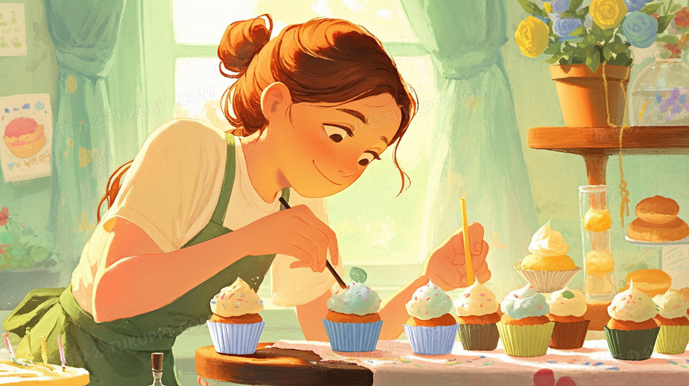 本作品内容为女孩制作美食蛋糕插画, 格式为 jpg, 大小3 MB, 图片尺寸为2912 x 1632, 源文件无水印, 欢迎使用熊猫办公。 如认为平台内容涉嫌侵权,可通过邮件:tousu@tukuppt.com提出书面通知,我们将及时处理。