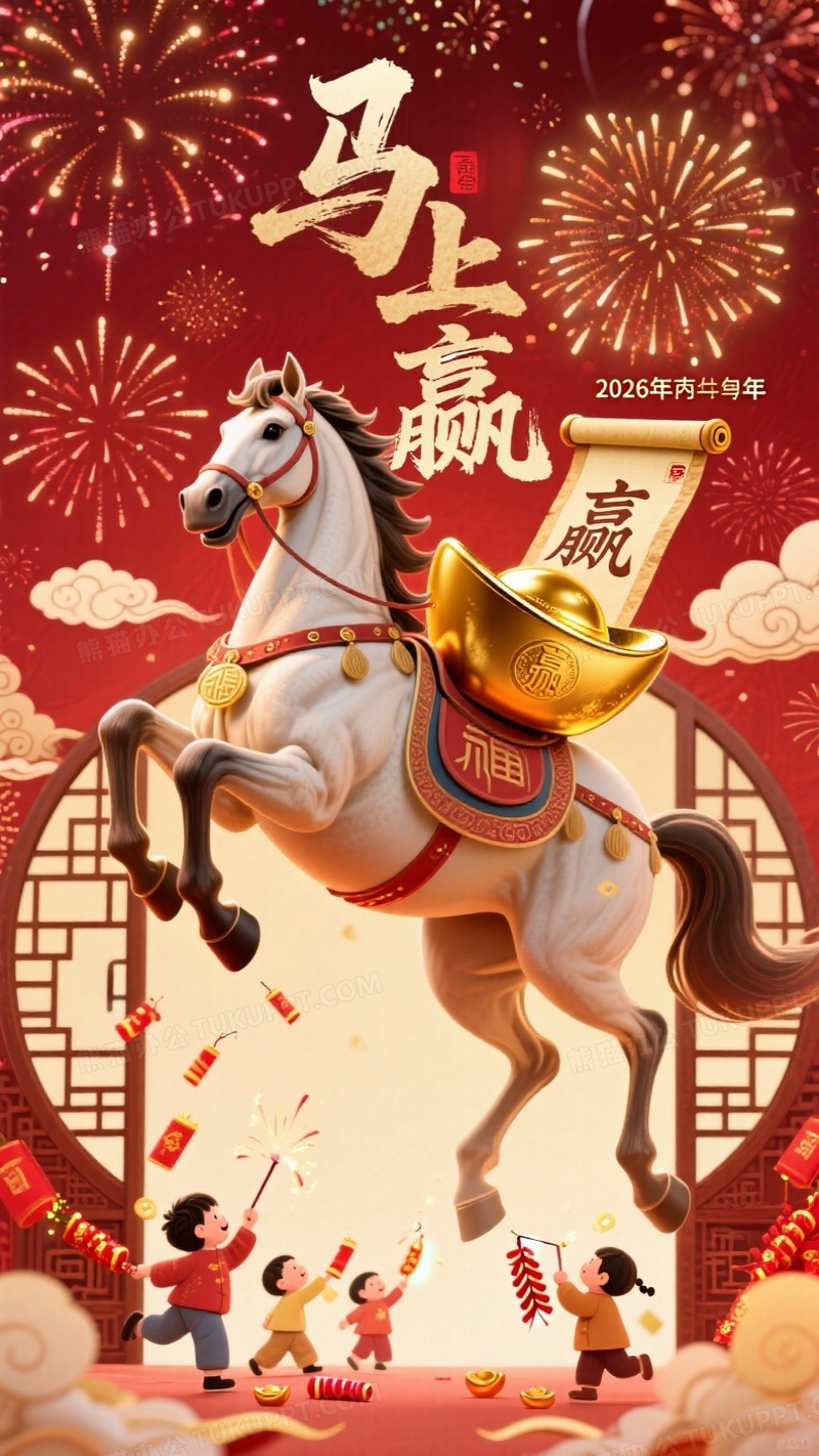 本作品内容为马年新年海报主题马上赢, 格式为 jpg, 大小1 MB, 图片尺寸为936 x 1664, 作品中背景图片无需修改, 源文件无水印,可以直接使用, 欢迎使用熊猫办公。 如认为平台内容涉嫌侵权,可通过邮件:tousu@tukuppt.com提出书面通知,我们将及时处理。