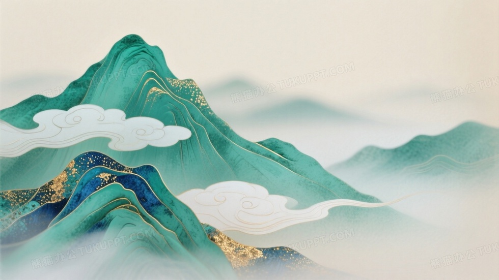 本作品内容为青绿山水主题图山脉是高饱和度色彩, 格式为 jpg, 大小1 MB, 图片尺寸为1664 x 936, 作品中背景图片无需修改, 源文件无水印,可以直接使用, 欢迎使用熊猫办公。 如认为平台内容涉嫌侵权,可通过邮件:tousu@tukuppt.com提出书面通知,我们将及时处理。