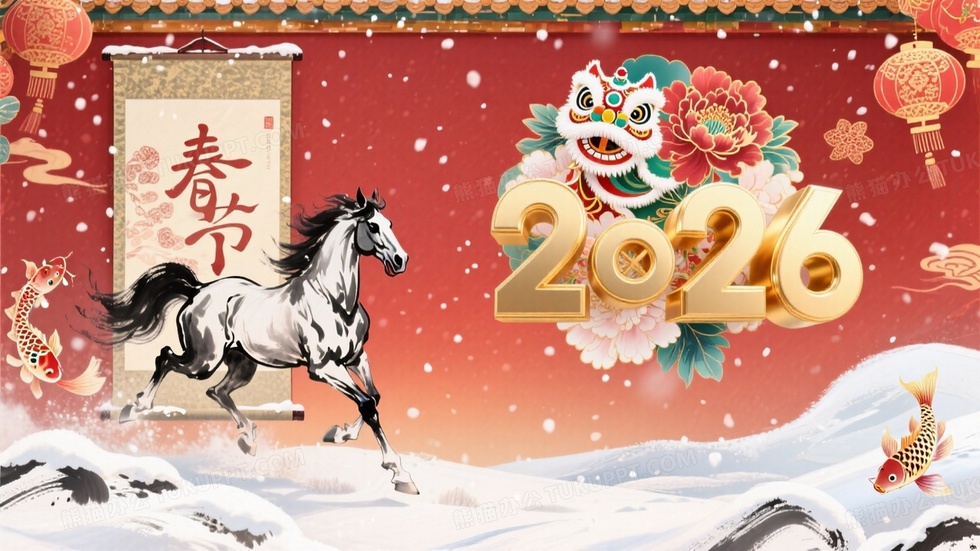 本作品内容为国潮风格春节设计水墨风格骏马奔腾在左侧画卷, 格式为 jpg, 大小1 MB, 图片尺寸为1664 x 936, 源文件无水印, 欢迎使用熊猫办公。 如认为平台内容涉嫌侵权,可通过邮件:tousu@tukuppt.com提出书面通知,我们将及时处理。
